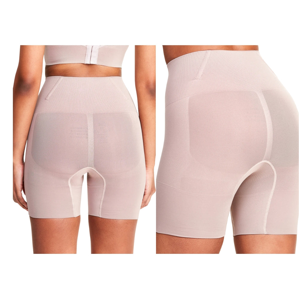 O acabamento especial faz com que o barrado fique invisível sob a roupa, sem perder a compressão nas coxas. Evita o contato entre as pernas.