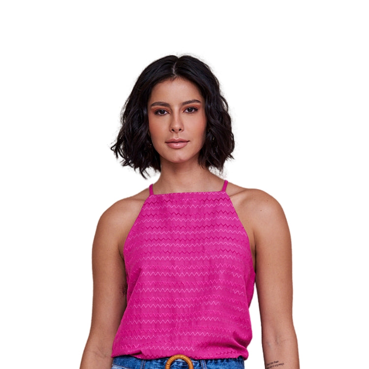 Possui alças finas ajustáveis e decote redondo, ideal para compor looks versáteis e elegantes.