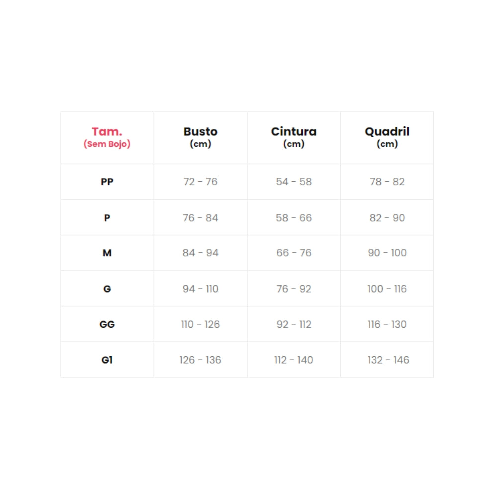 Composição: 85% Poliamida, 10% Elastano e 5% Algodão