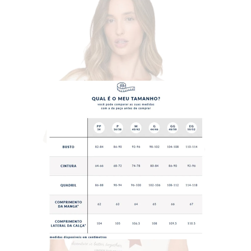 COMPOSIÇÃO: Blusa: 96% Poliéster 4% Elastano Calça: 96% Poliéster 4% Elastano
