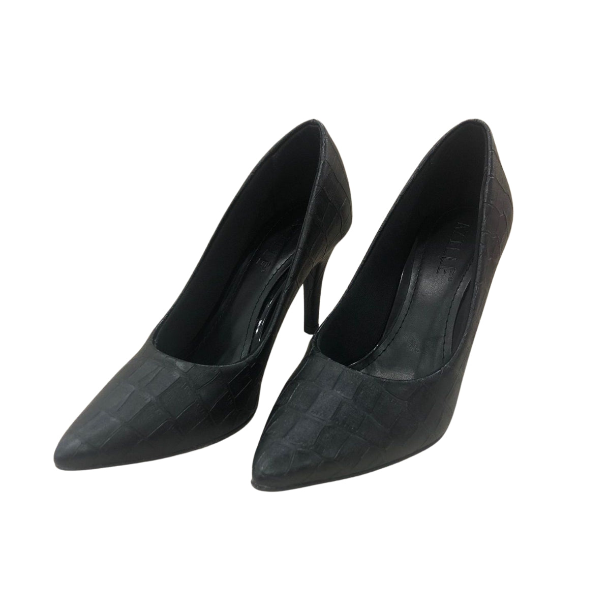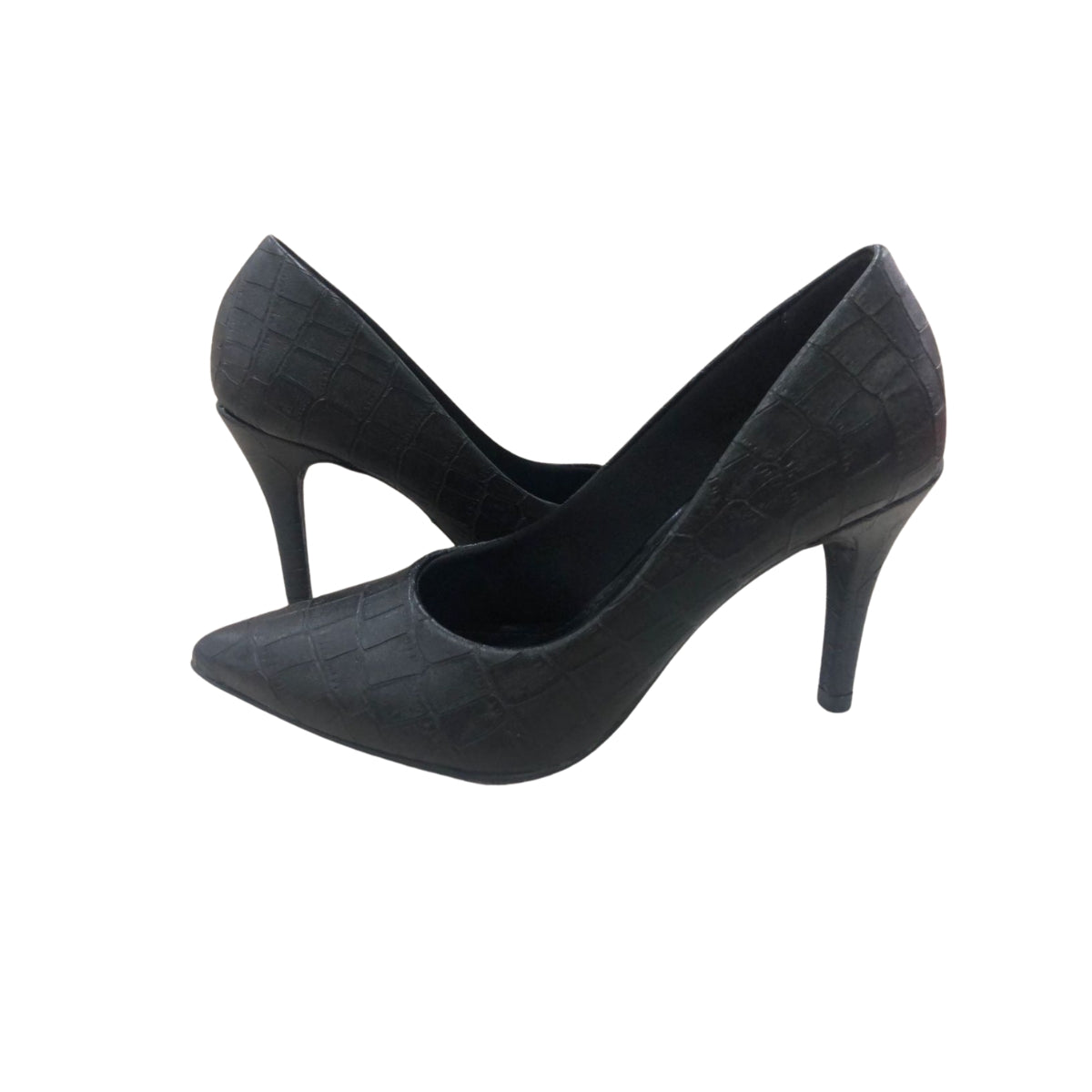 Salto Alto Scarpin Croco Gavial Preto Azillê