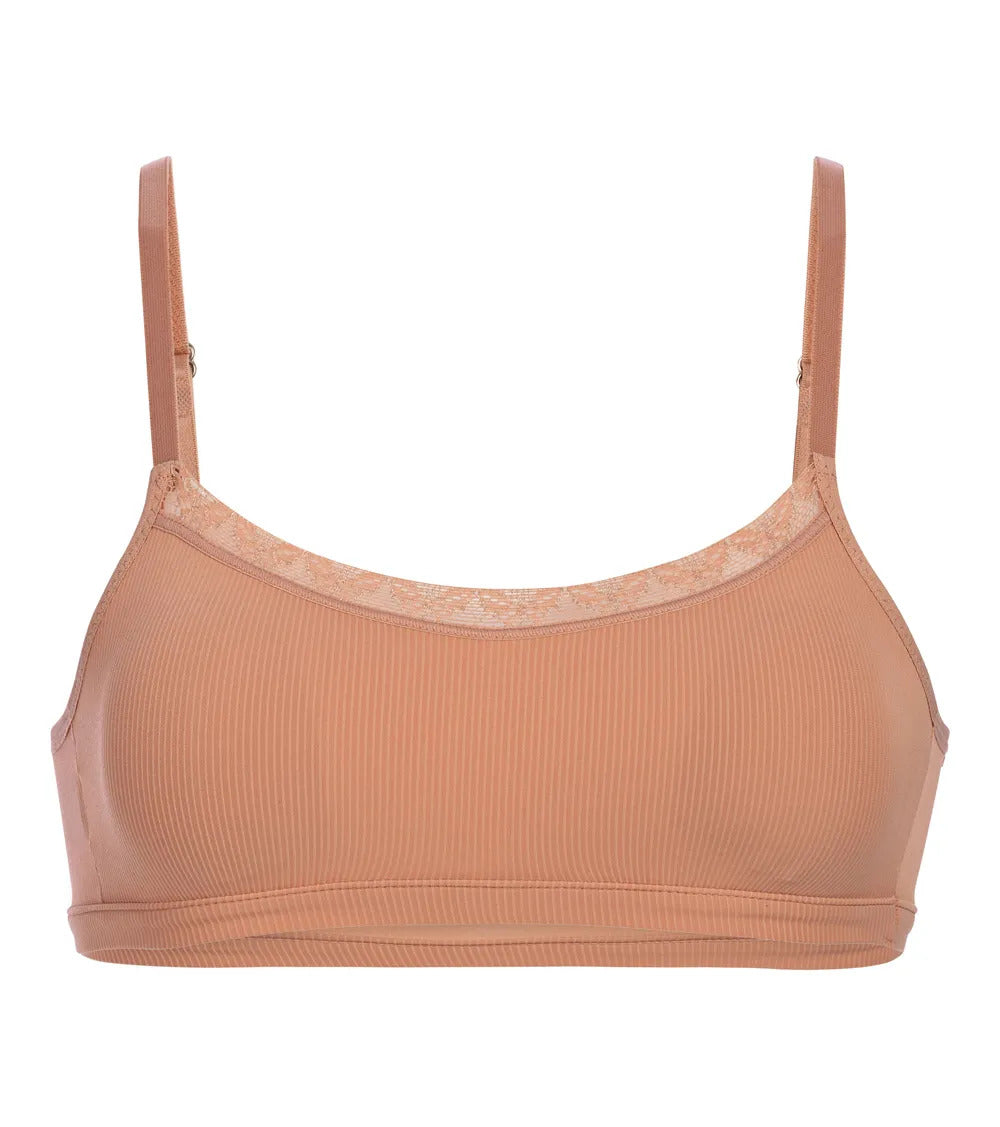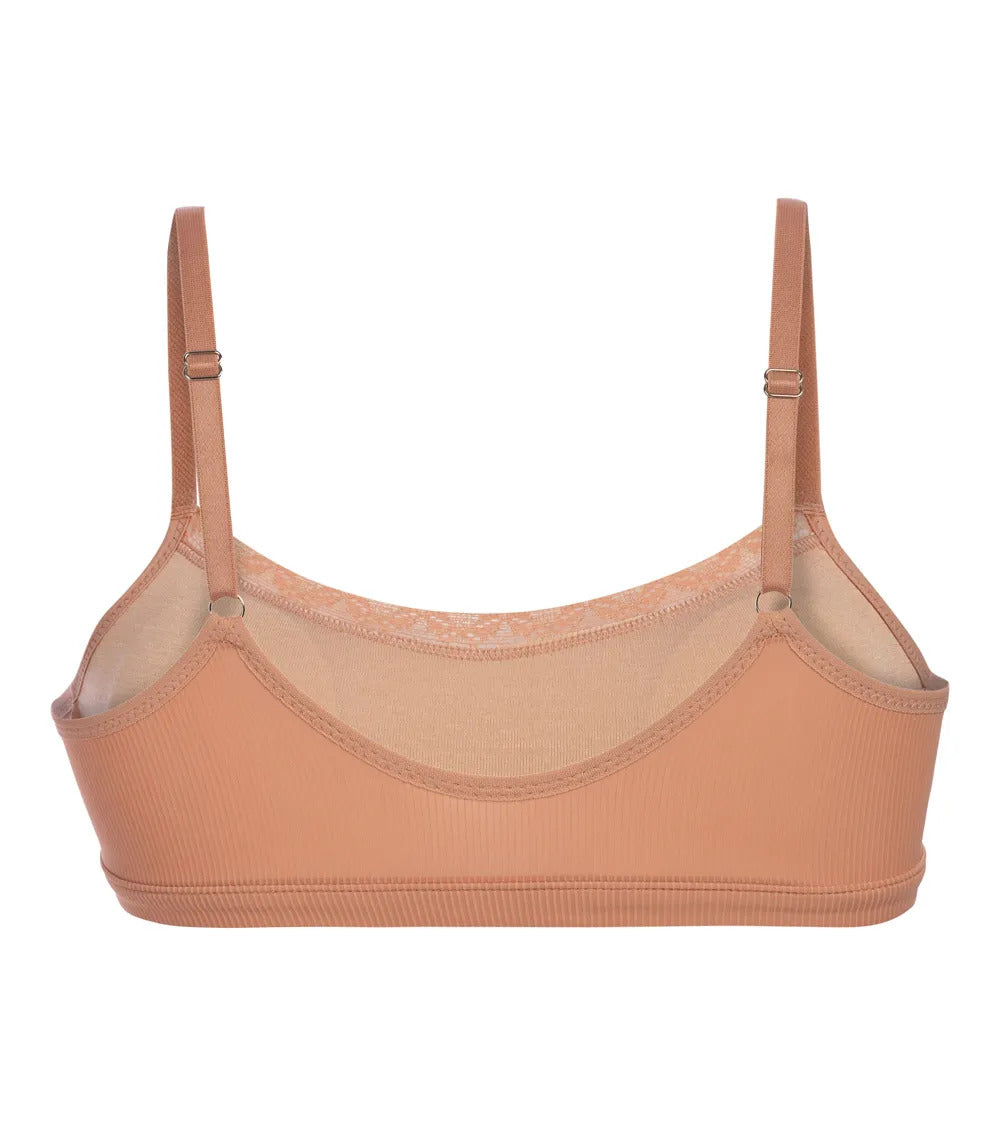 • Renda que harmoniza perfeitamente com o tecido canelado