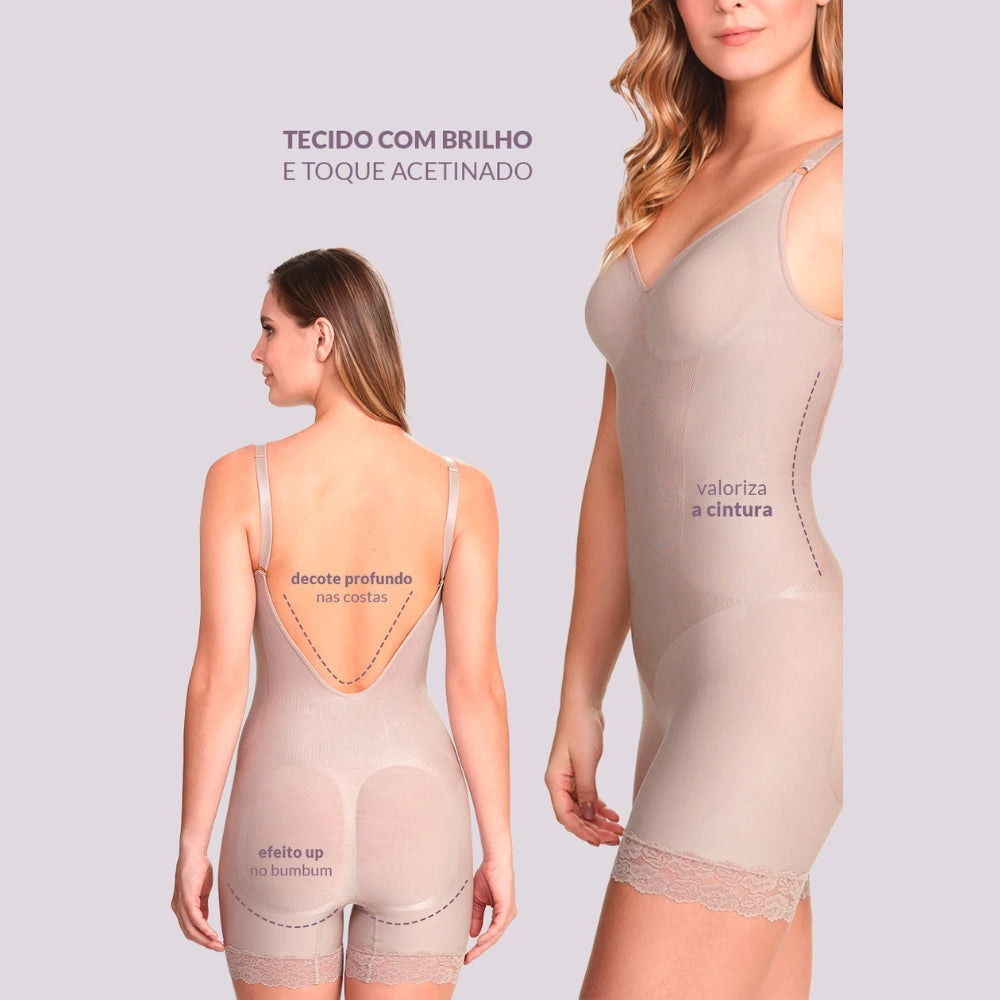 Body Modelador Macaquinho Decote Sem Bojo Com Renda Levanta Bumbum