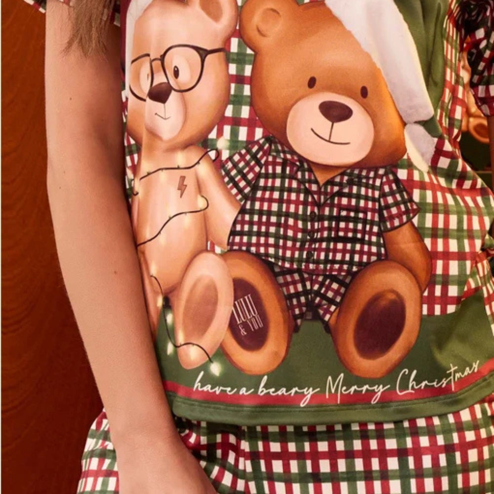 O clima de Natal invade os momentos de descanso com os nossos personagens Lulu e Steve, que encantam e trazem toda a magia dessa época especial. Esse pijama curto é confeccionado em malha exclusiva Sublime Touch, com toque pele de pêssego super macio, proporcionando aconchego e frescor para noites ainda mais relaxantes. A camiseta conta com decote redondo de cor contrastante e estampa exclusiva Lua Luá com escrita "Have a Beary Merry Christmas". O short de modelagem reta possui estampa xadrez, elástico no cós para melhor ajuste e cordão decorativo. Uma proposta que une delicadeza e espírito natalino, perfeita para criar memórias inesquecíveis ao lado de quem você ama!