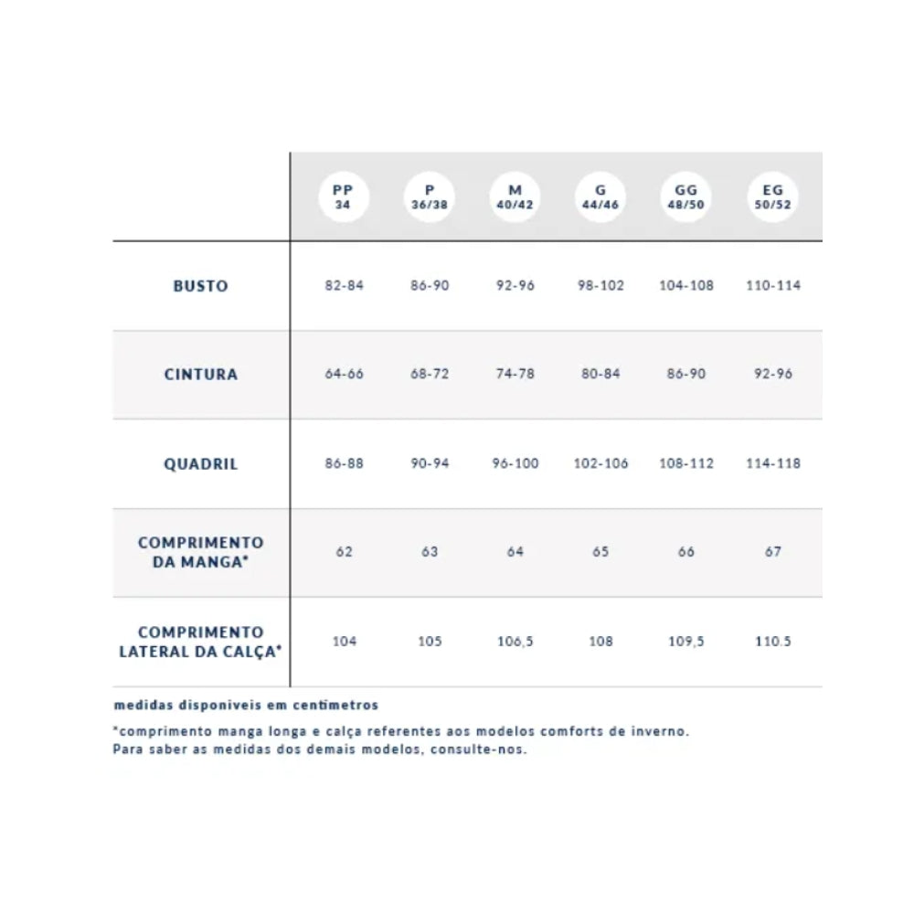 COMPOSIÇÃO: Blusa 96% Poliéster 4% Elastano | Calça 96% Poliéster 4% Elastano