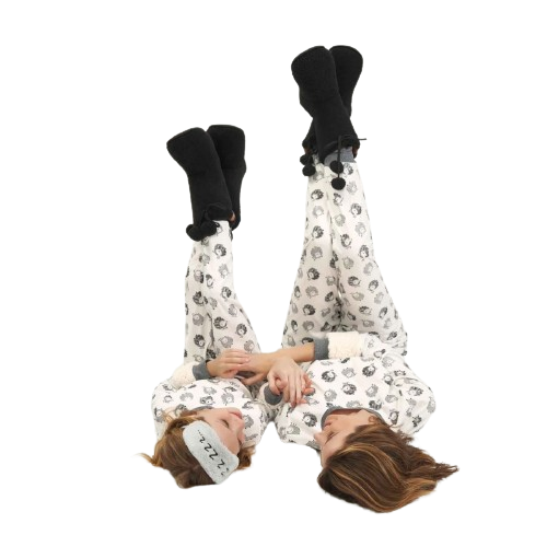Pijama manga longa em malha comfort 100% algodão. Blusa com decote e punho canelado, modelagem tradicional e recorte de pelinho no punho. Calça estilo jogger com punho canelado, elástico 2 cm no cós e falso amarrador. Pijama divertido e confortável, perfeito para dias de descanso no inverno.