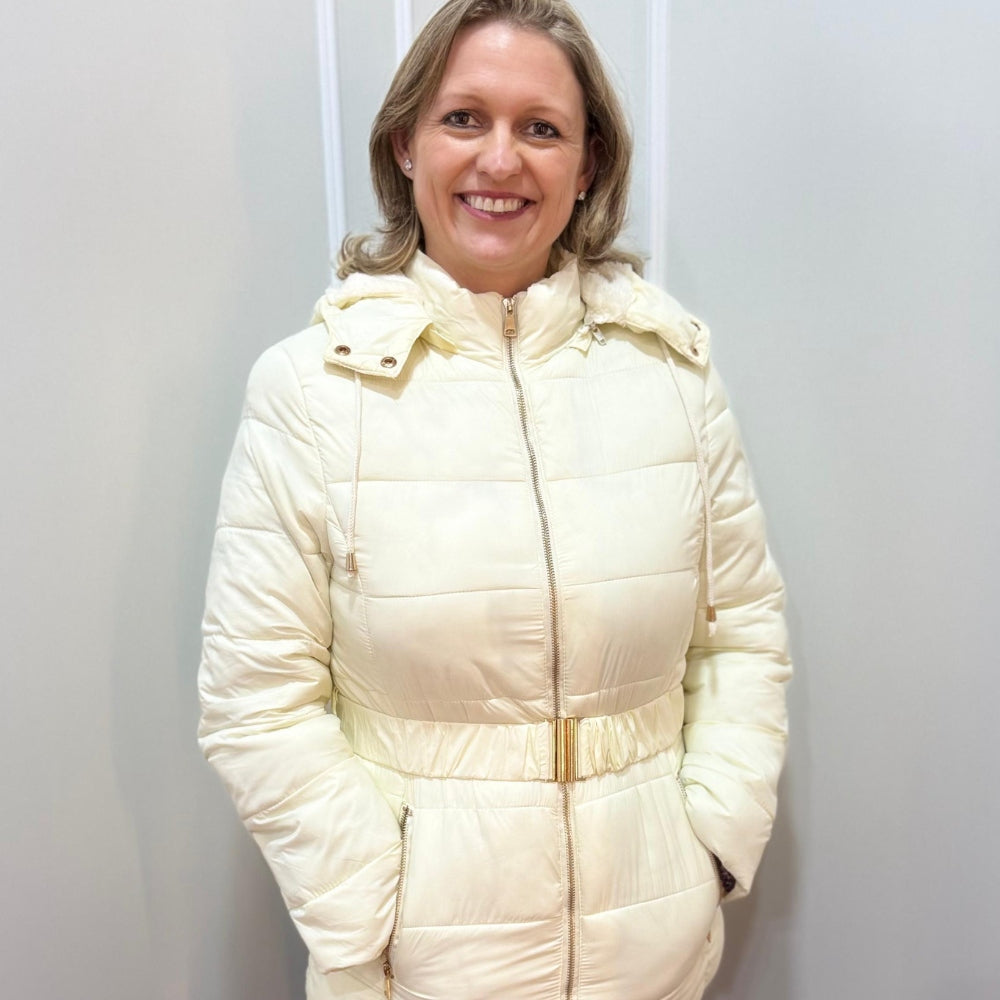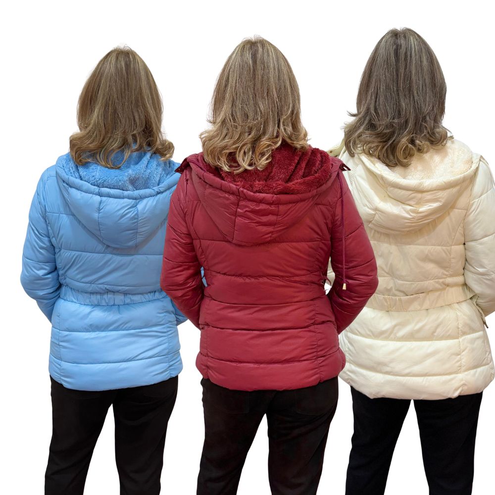 Jaqueta Alongada em Fibra com Pelo e Capuz Removível Ref 3056T