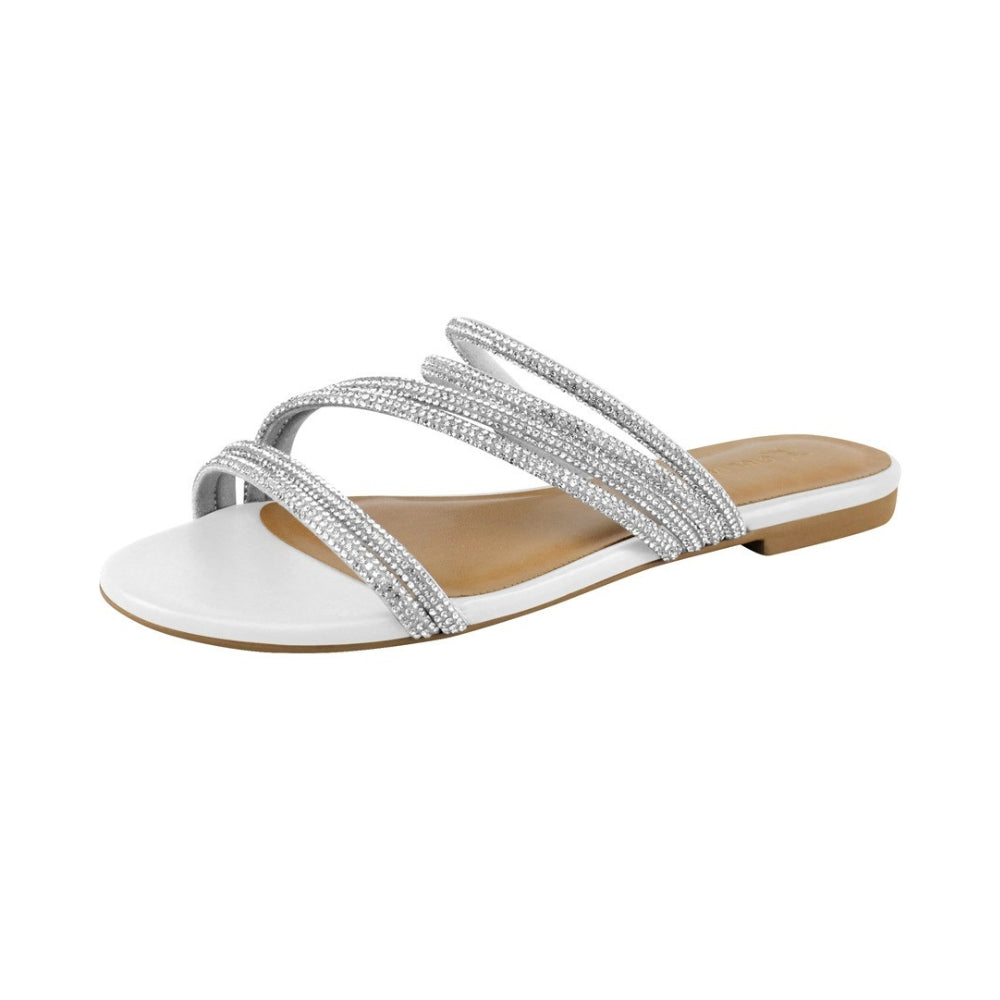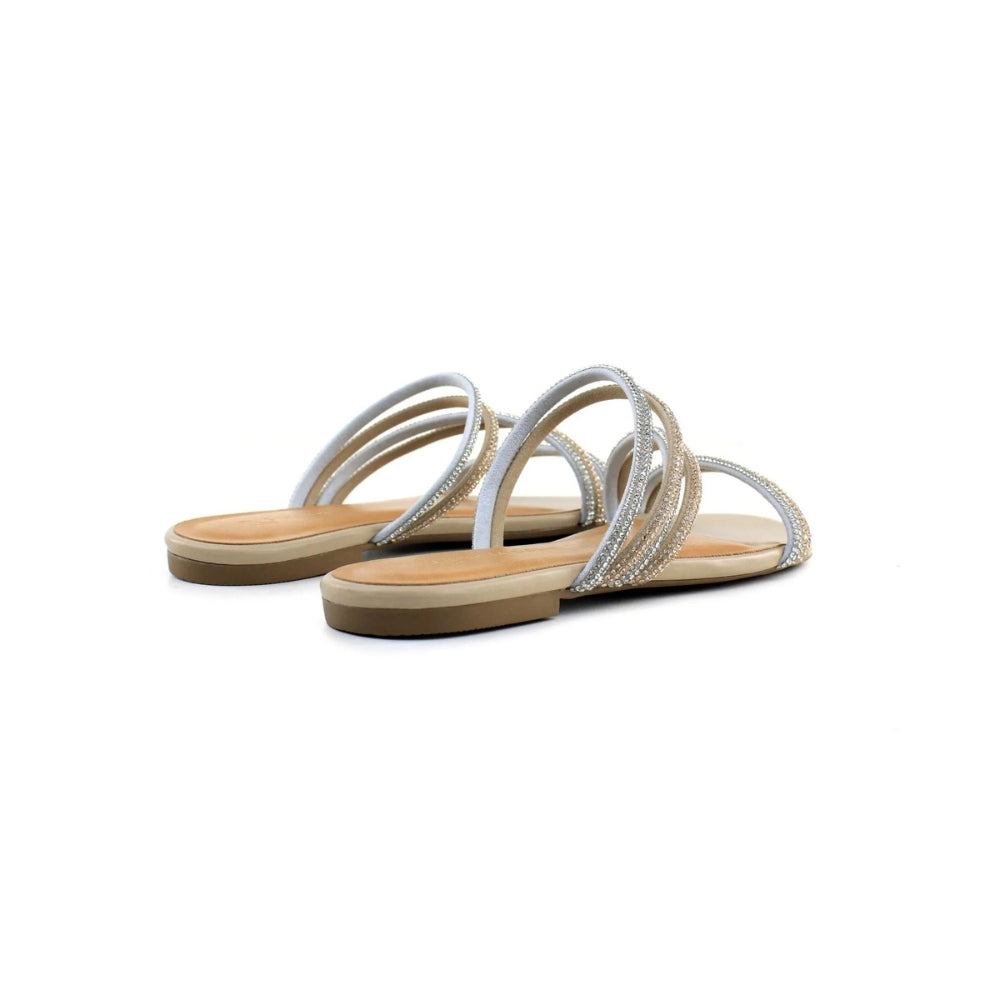Essa rasteirinha vai surpreender você, já que pode ser usada com diferentes looks, dando um toque de brilho devido às suas tiras retas e transversais em strass.
