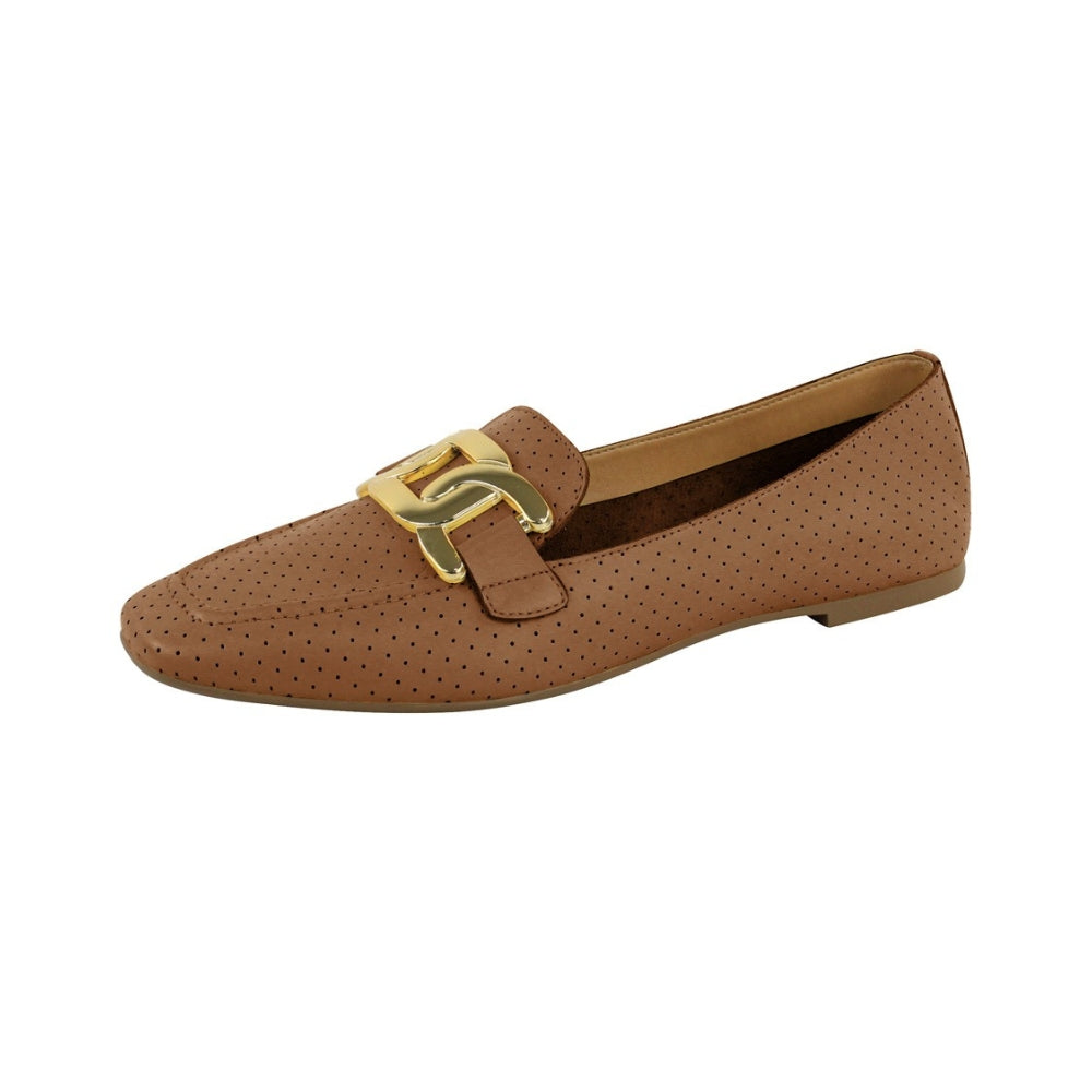 O calçado é confeccionado em couro, o que proporciona durabilidade e sofisticação incomparáveis. Além disso, possui bico arredondado, detalhe de bridão cromado em ABS e um pequeno salto.