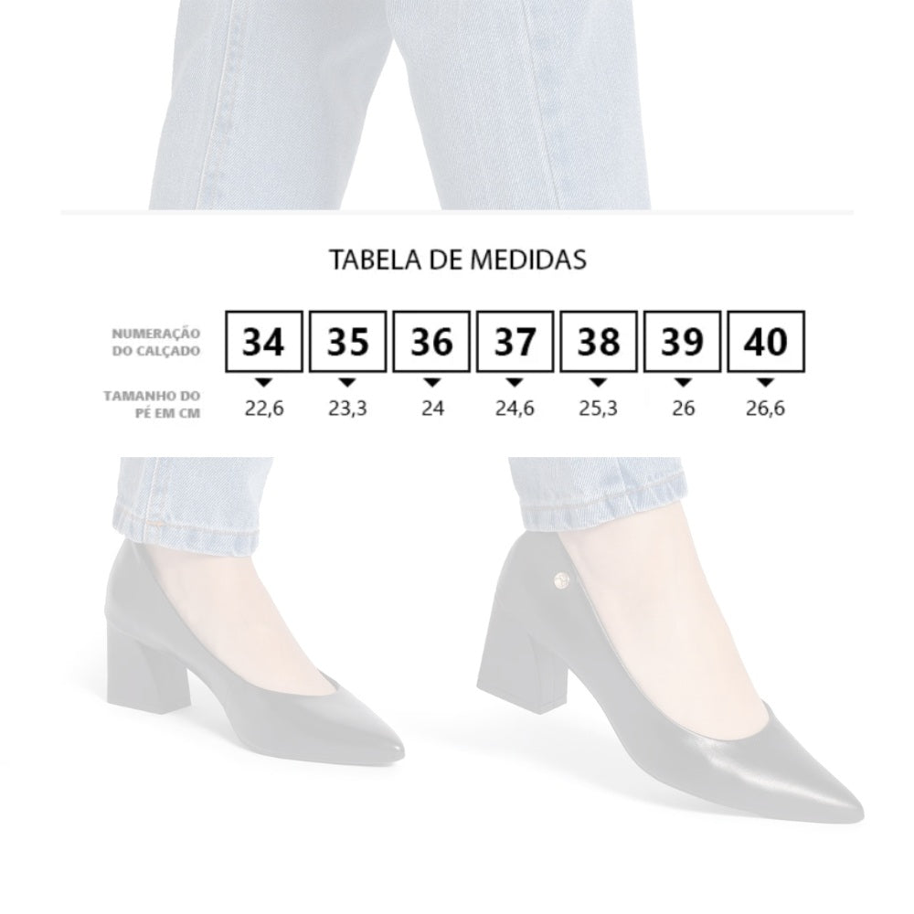 Scarpin Sapato Feminino em Couro com Bico Fino e Salto Bloco