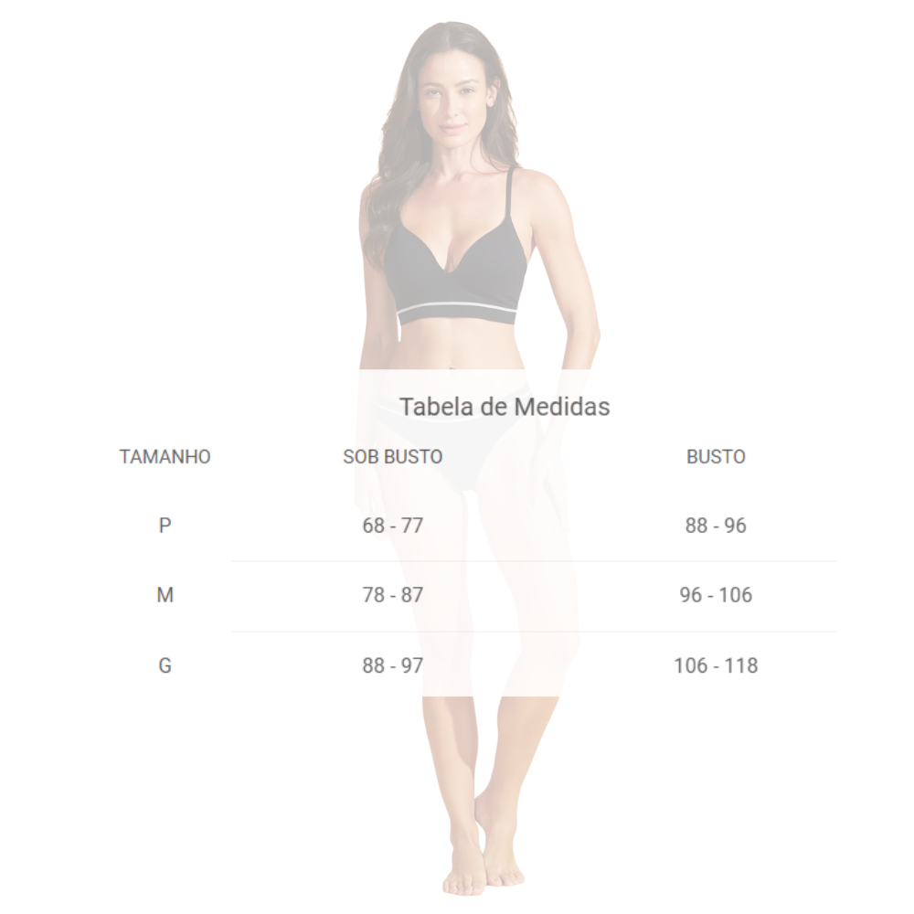 Como usar: - Projetado para oferecer conforto e estilo, esse sutiã é uma peça versátil que pode ser usada no dia a dia, proporcionando um perfeito caimento para quem não abre mão do conforto do sutiã com bojo. Ideal para ser combinado com outras peças da mesma família.
