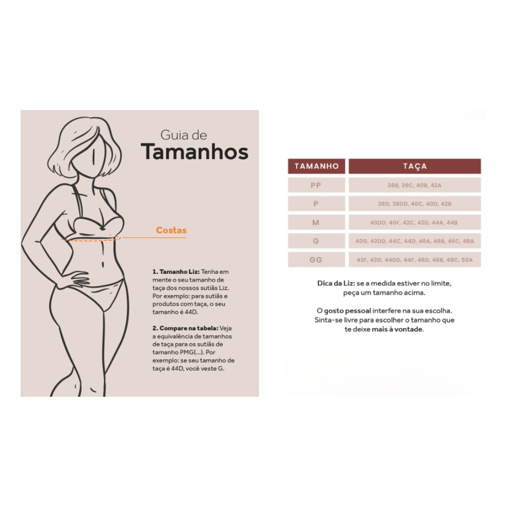Composição: Tecido: 87% Poliamida 13% Elastano Reforço interno: 85% Poliamida 15% Elastano