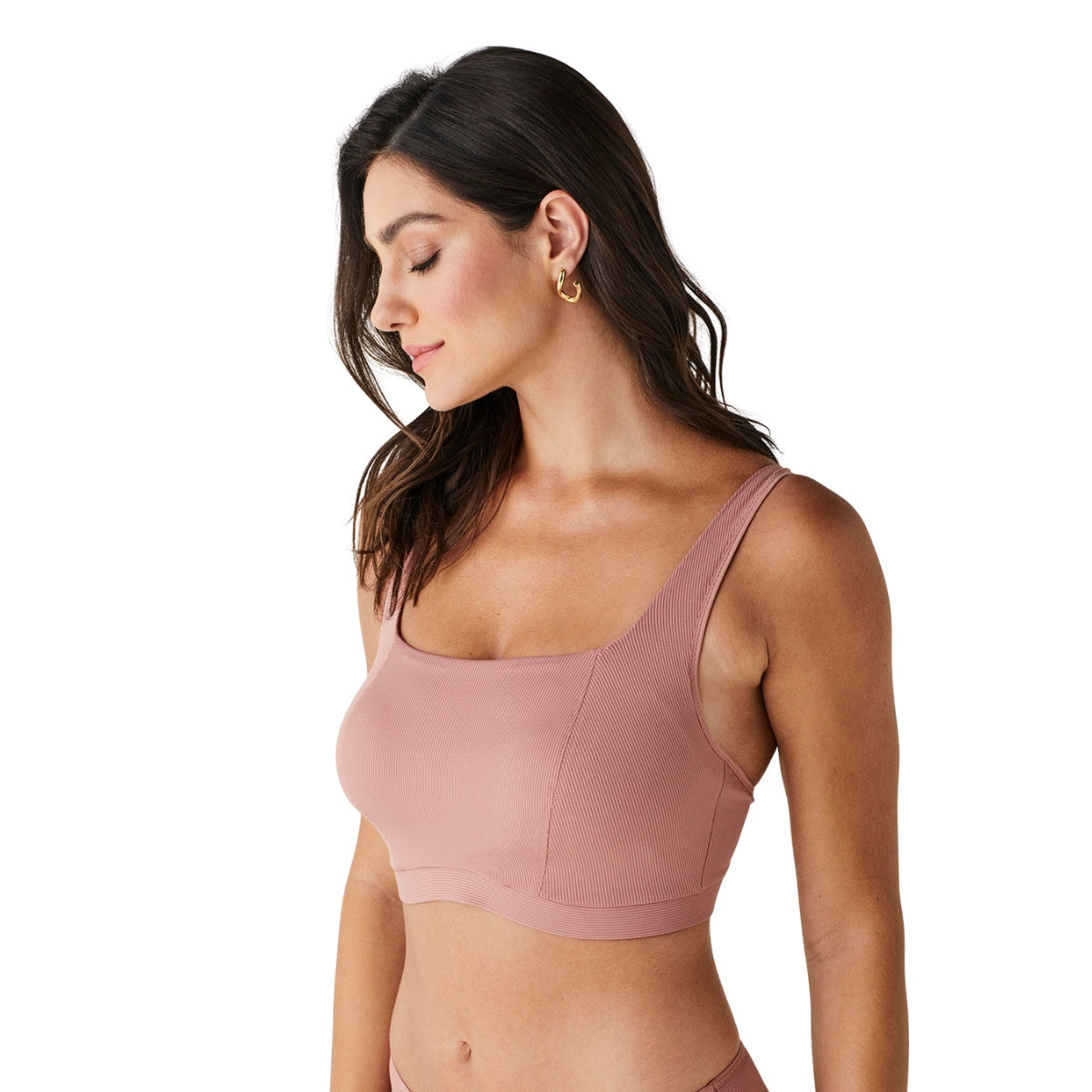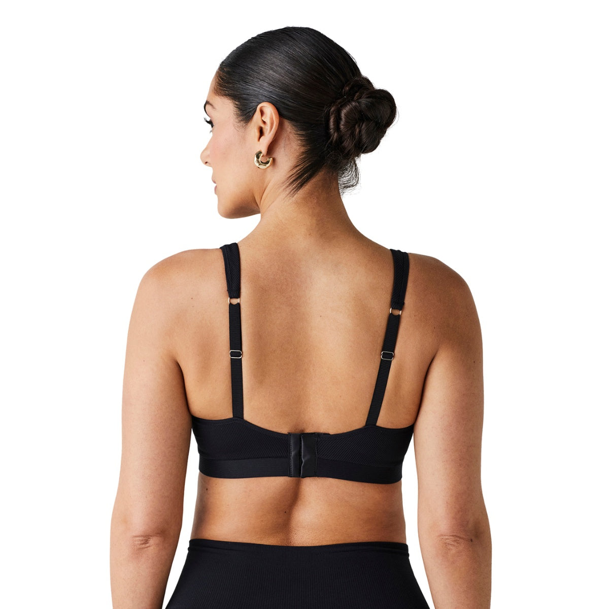 Essa peça tem sua base com o elástico de microfibra embutido, para dar mais sustentação para os seios, mas com muito mais conforto. Além disso, suas alças na frente são em tecido canelado para deixá-las mais bonitas para possivelmente compor com um look, mas são reguláveis nas costas, para dar maior ajuste e segurança.